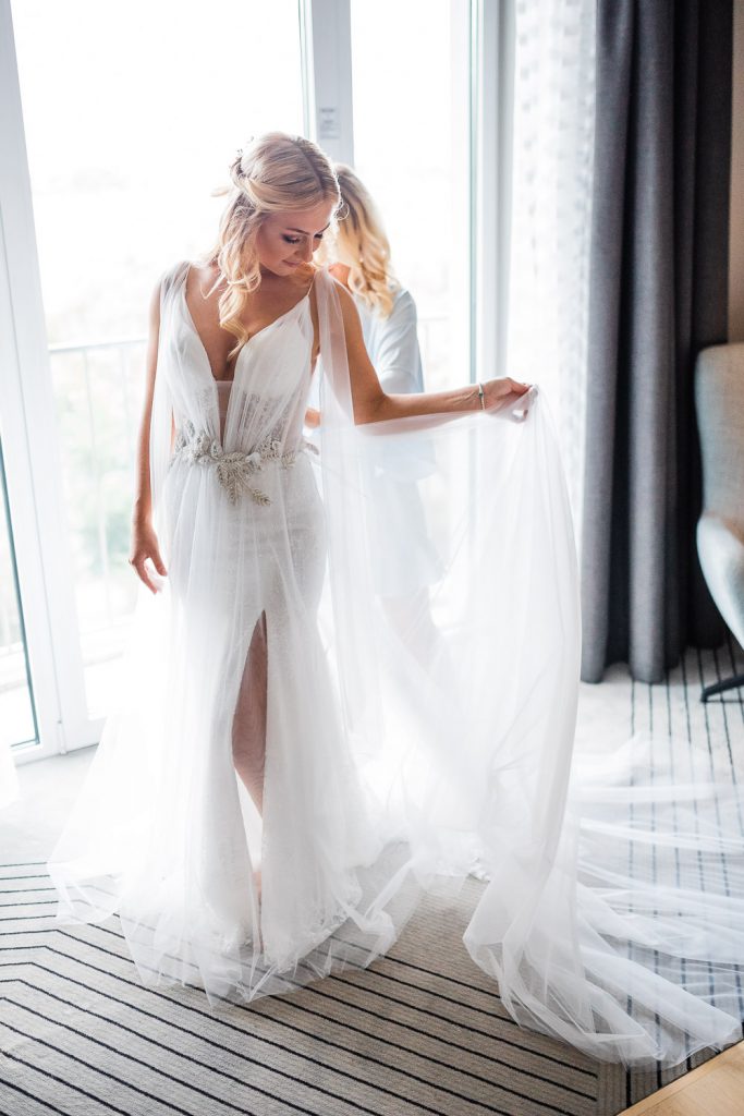 Erst vor kurzem habe ich in meinem Blog darüber berichtet, weshalb ich den Hochzeitspaaren ein Getting Ready empfehle. Das Getting Ready von Anastasia hatte wirklich alles, um ganz entspannt in den Hochzeitstag zu starten. Für die Brautjungfern und Trauzeugin gab es zunächst kleine Geschenke. Außerdem war vom Morgenmantel bis zum Sektglas das Styling perfekt. Im einheitlichen Look verbrachten die Freundinnen einen Vormittag im Hotel Le Méridien. Mit viel Freude sorgten sie gegenseitig für das Haarstyling und das passende Make-up. Und um auf diesen wunderbaren Tag anzustoßen, durfte eine Flasche Champagner natürlich auch nicht fehlen.
