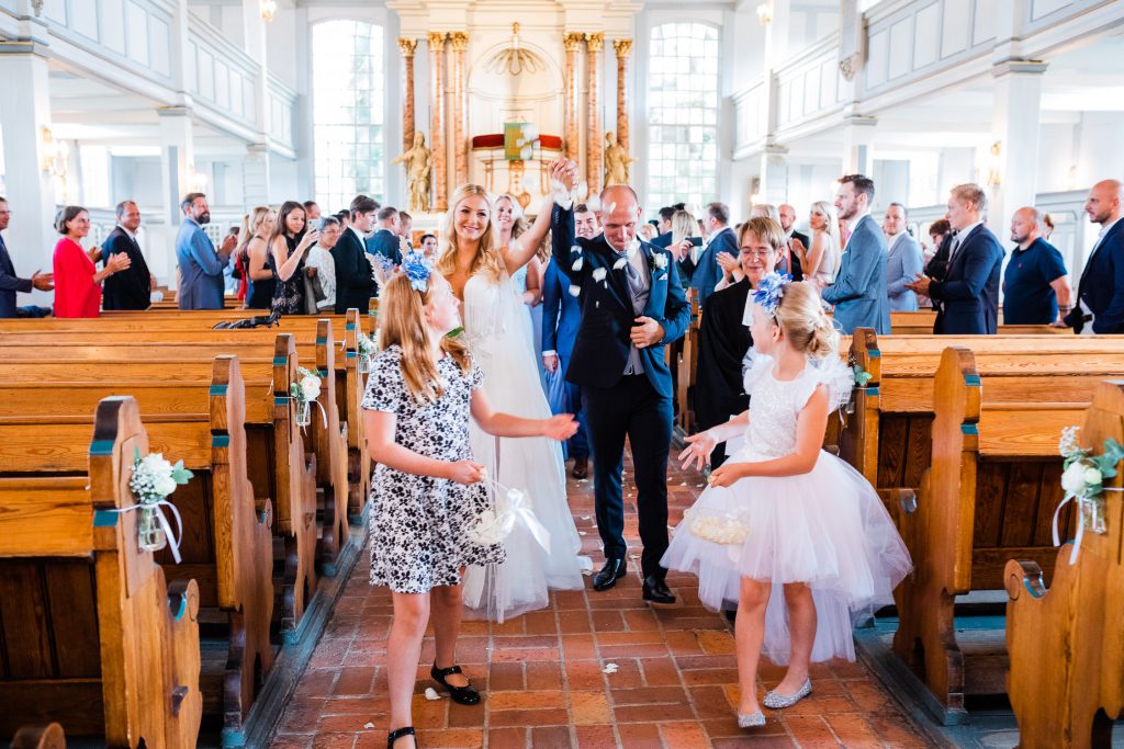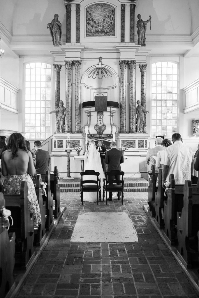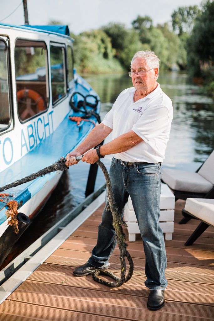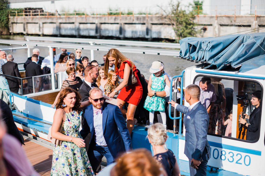 Währenddessen wartete Alexander bereits gespannt vor der Kirche in Nienstedten, in der die Trauung am Mittag stattfand. Nach der Zeremonie wurden die Gäste von einem Doppeldecker Bus zu einer kurzen Stadtrundfahrt abgeholt und wurden schließlich zu den Landungsbrücken gebracht. Dort startete die Fahrt mit der Barkasse zum Hansekai nach Wilhelmsburg.
