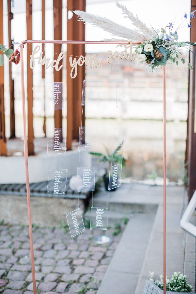 Von den Tischplatzkarten bishin zur Hochzeitstorte war wirklich alles mit sehr viel Liebe zum Detail dekoriert, sodass die industrial-chic und Boho-Style wunderbar miteinander harmonierten.