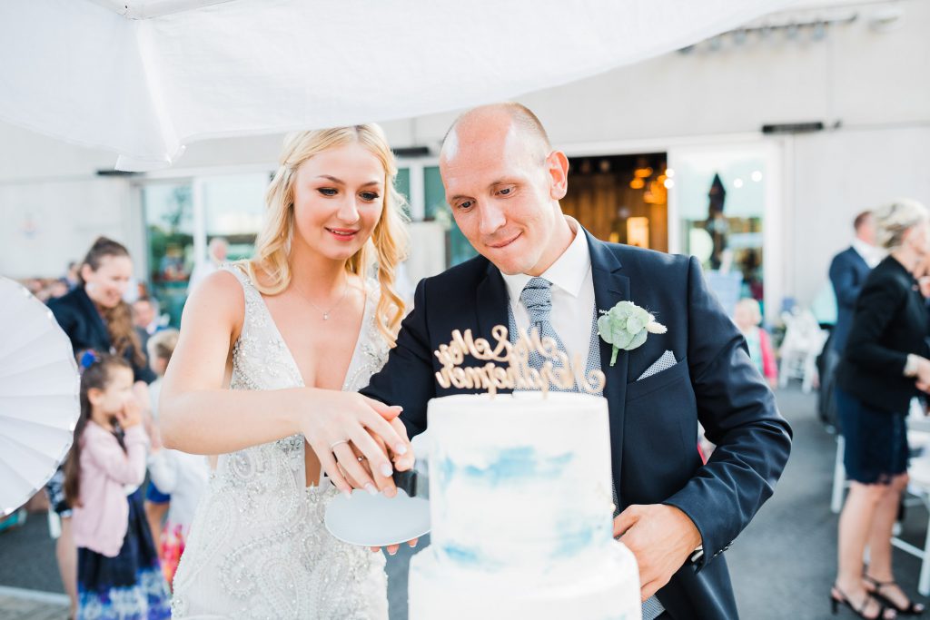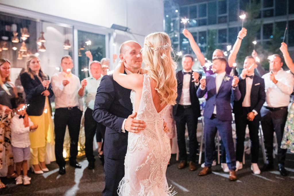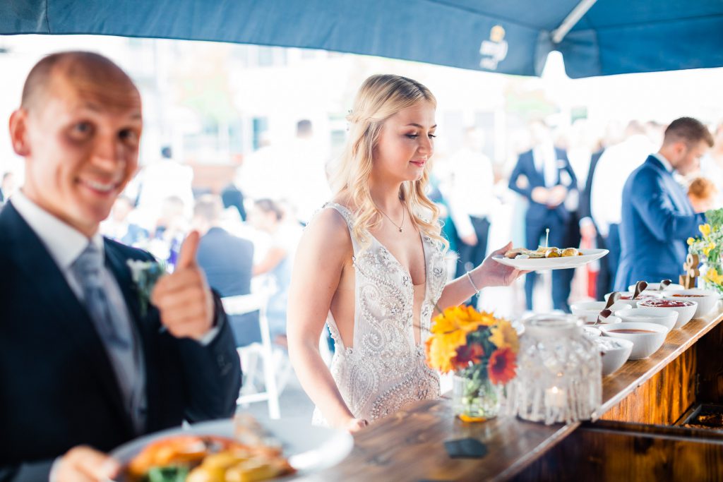 Nach einigen Hochzeitsspielen startete das Brautpaar dann in die ausgelassene Party, die bis in die frühen Morgenstunden ging. Und wer eine kurze Pause vom Tanzen benötigte, genoss den Sommerabend mit einem Getränk am Steg mit Blick auf den Jaffekanal.