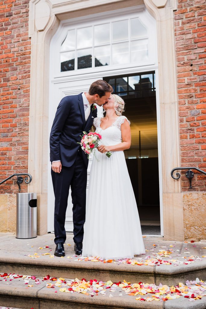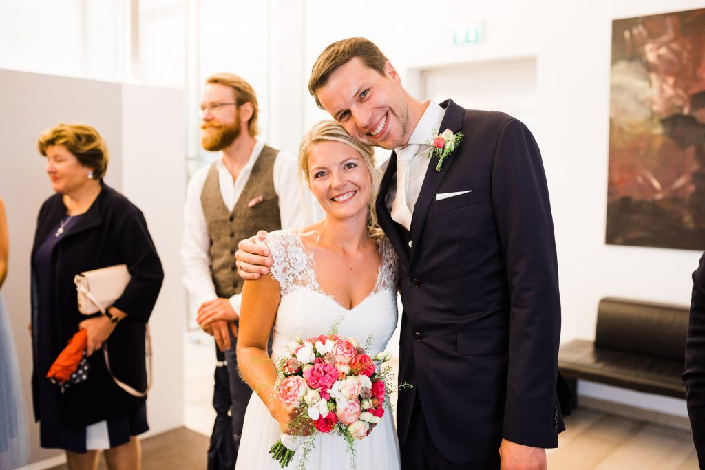Der Hochzeitstag von Jana und Christoph begann mit einem Treffen am Standesamt in Münster. Einige Freunde und die Familie warteten schon voller Vorfreude vor dem schönen Lotharinger Kloster. Nicht immer hat man die Möglichkeit, bereits vor dem Standesamt in solche einer entspannten Atmosphäre in den Tag zu starten, sodass ich mich hierüber besonders gefreut habe.