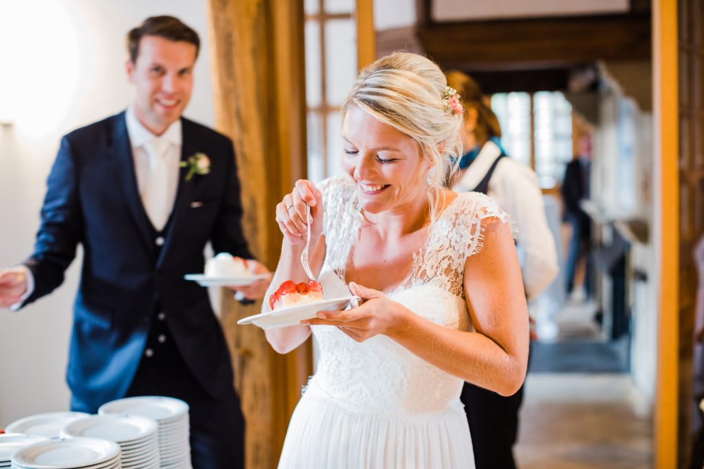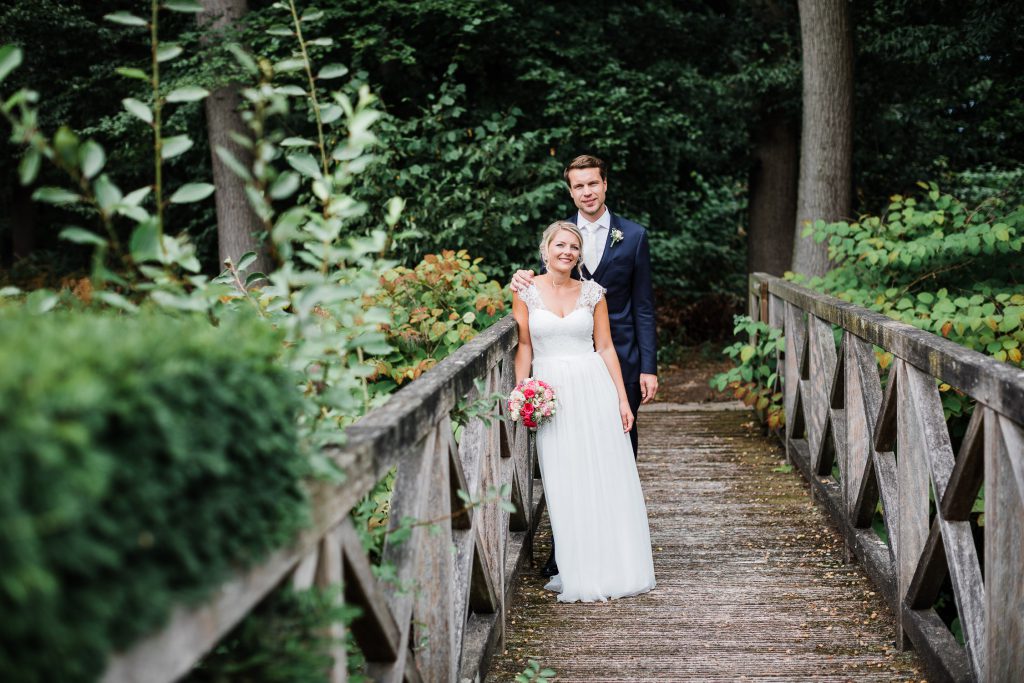 Während die Gäste sich ein wenig mit Kaffee und Kuchen bei musikalischer Begleitung stärkten, nutzten wir die Zeit, um einige Fotos auf kleinen Brücken und den neben den Pferdeställen des Gut Havichhorst zu machen. Die Kulisse war wie geschaffen für ein tolles Hochzeitsshooting.