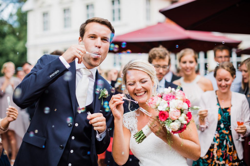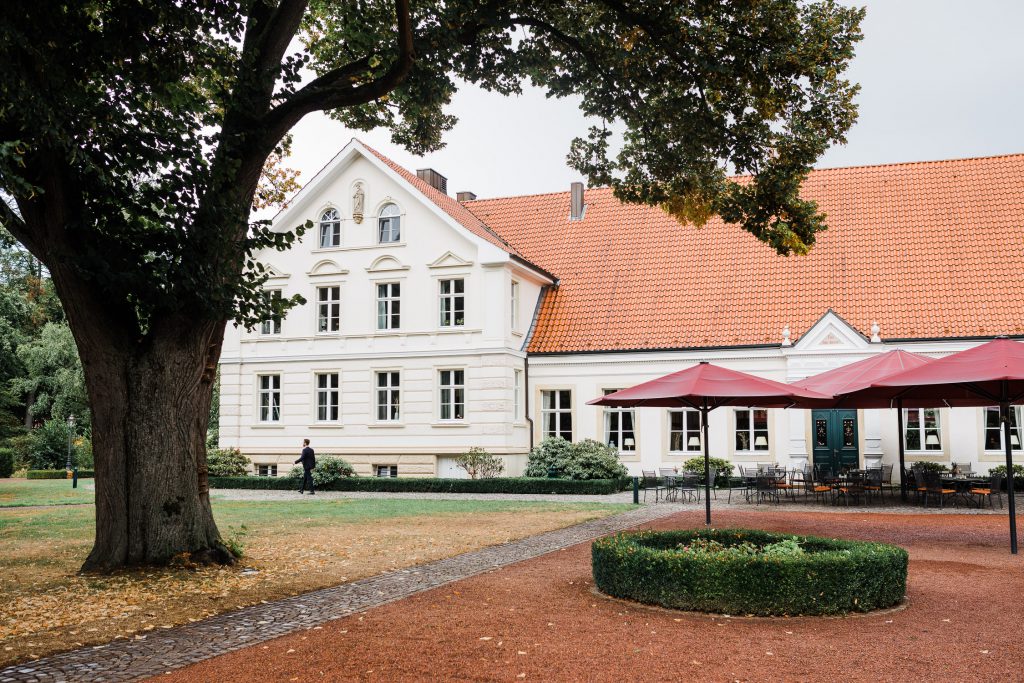 Nach einer wundervollen Trauung und dem Sektempfang vor dem alten Kloster fuhren wir gemeinsam mit den Gästen zum Gut Havichhorst. Dies befand sich einst im Besitz Christoph‘s Familie. Dieser persönliche Bezug machte die Location natürlich zu einer ganz besonderen.