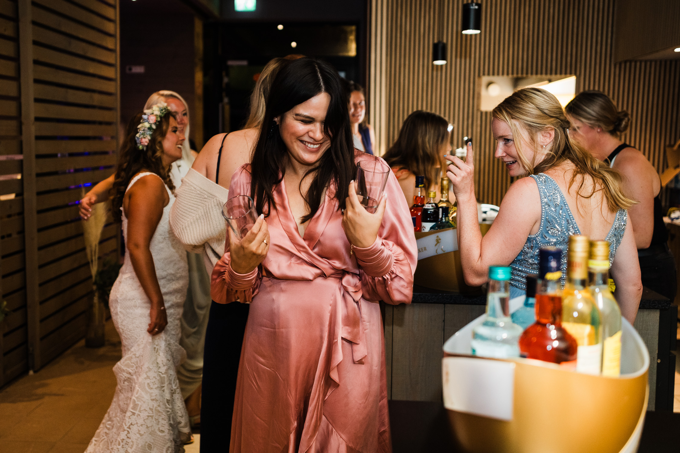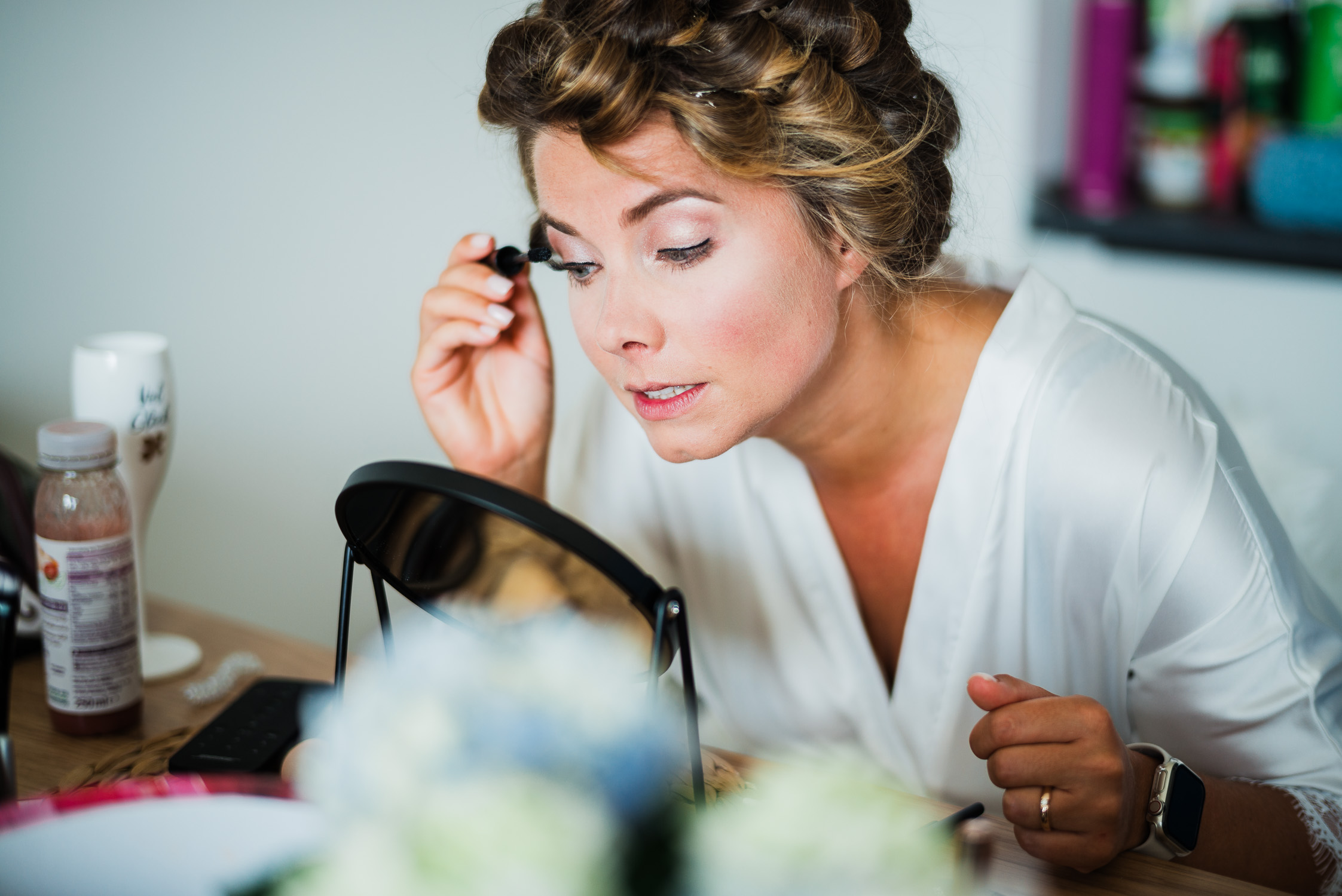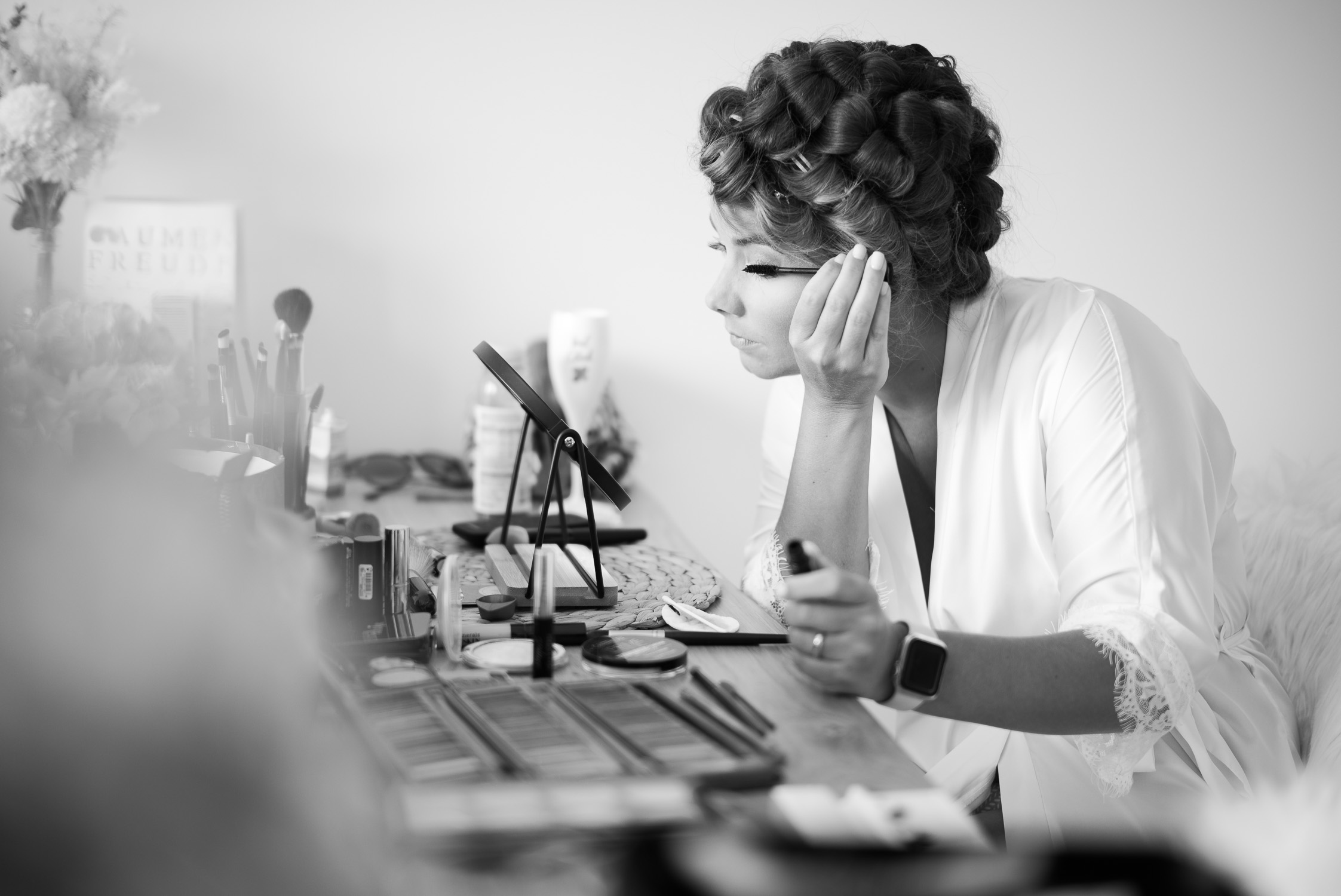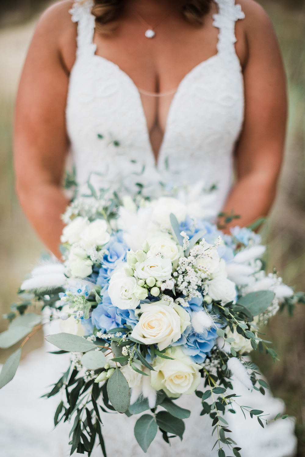 Die Hochzeitsfeier fand am nächsten Tag statt. Als Location entschied sich das Brautpaar für den Beachclub Nethen, der direkt an einem See mitsamt Kitesurf-Anlage gelegen ist. Passend zum traumhaften Wetter war hier als Dresscode “barfuß” angesagt. Doch bevor die Ringe mit Sand zwischen den Zehen getauscht werden konnten, ließ Jantje es sich zusammen mit Freundinnen beim Getting Ready gut gehen. Bei ausgelassener Stimmung, einem Glas Sekt in der Hand und guten Gesprächen bereiteten sich alle auf die große Zeremonie vor. Hierbei entstanden stilvolle Detailaufnahmen des Kleids und einiger Accessoires, die eine Hochzeitsreportage erst rund werden lassen.
