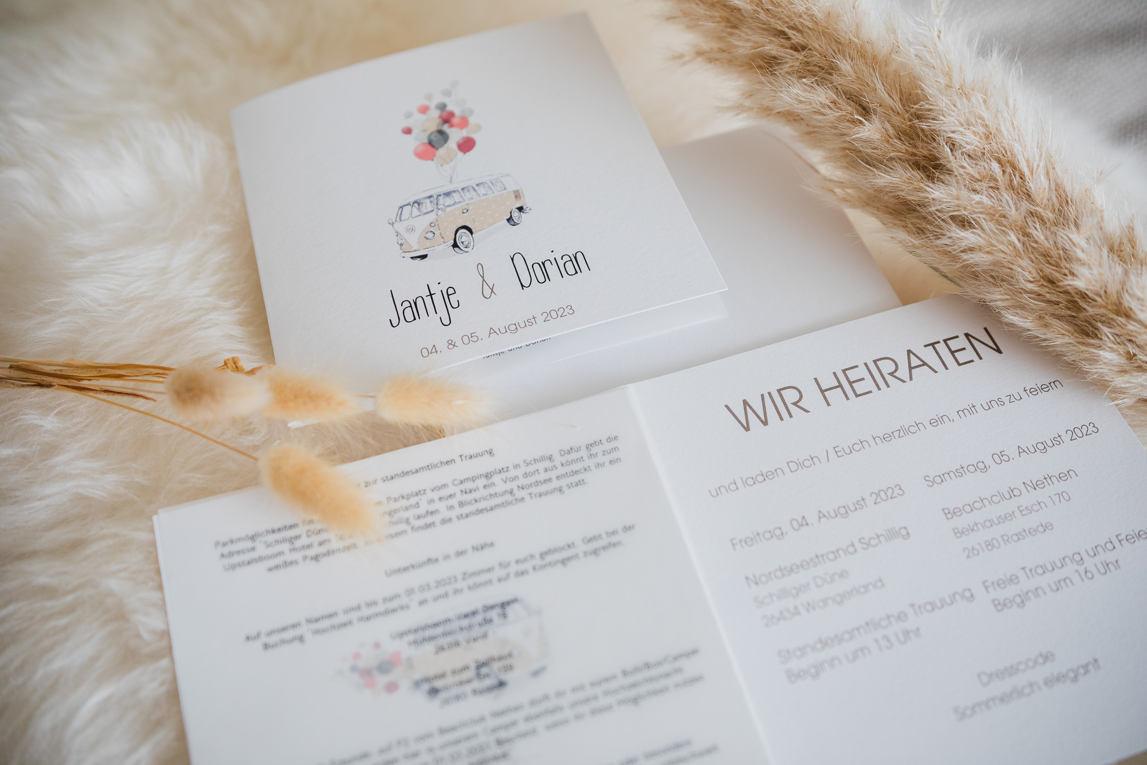 Im August 2023 feierten Jantje & Dorian ihre Strandhochzeit bei bestem Wetter. Standesamtlich ließen sich die beiden am Nordseestrand Schillig trauen, wo sie bereits zuvor unzählige Stunden mit ihrem Camper bei Urlauben und Kurztrips verbracht haben. Beide fühlen sich eng mit dem Strand und Meer verbunden, sodass dieser Ort die perfekte Location für ihre Strandhochzeit darstellte.